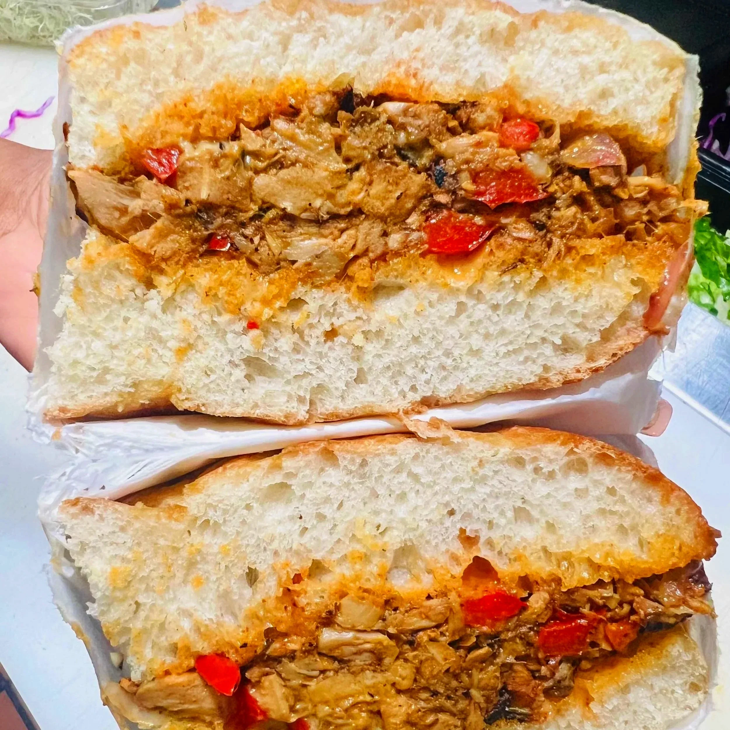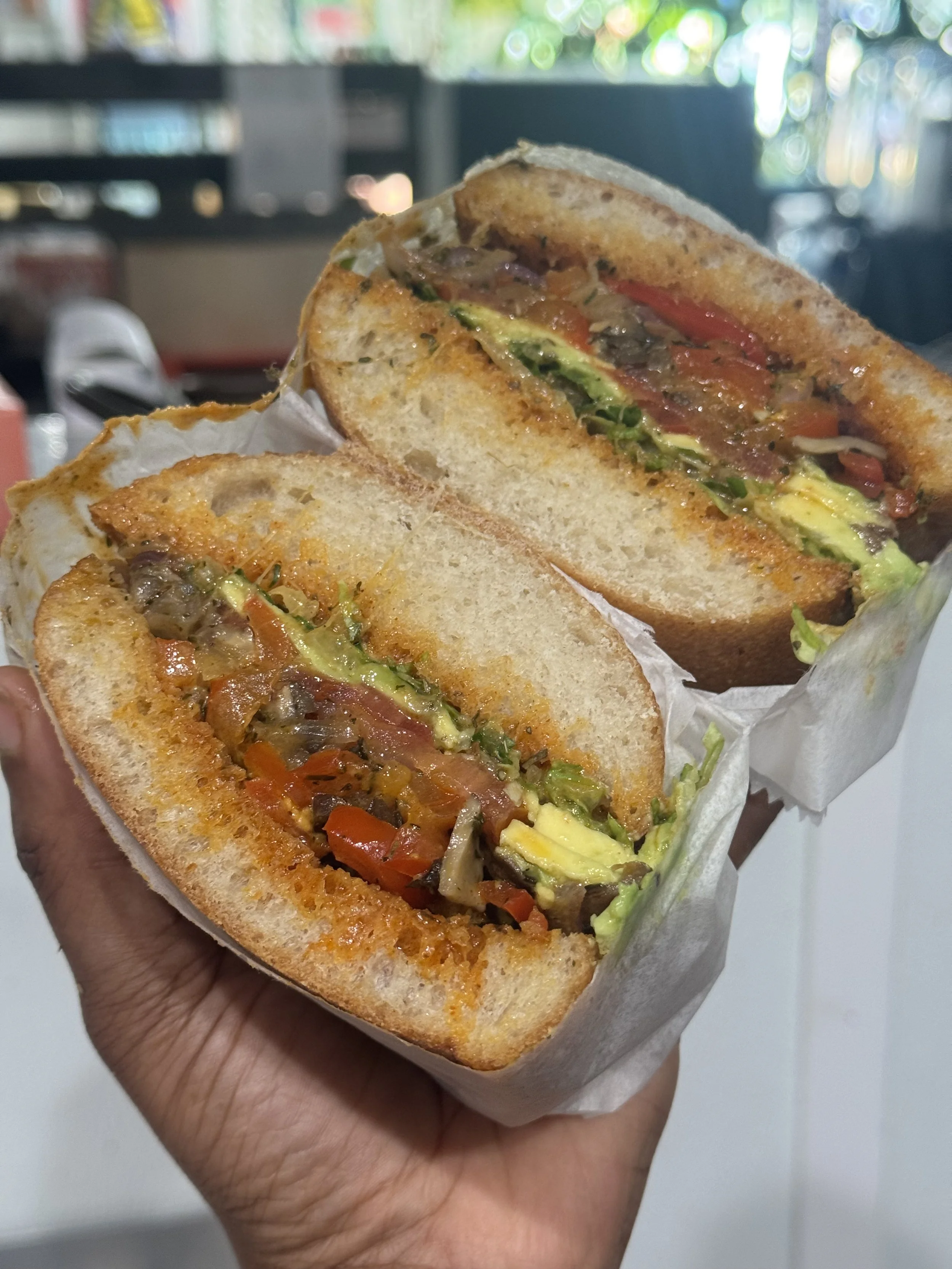 Fresh, made-from-scratch vegan sandwiches stacked with house-made deli slices, veggies, and spreads.
